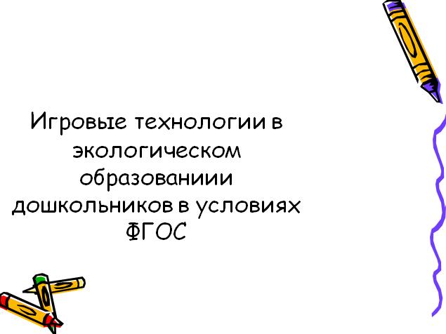 Игровые технологии в экол. воспитании дошкольников в условиях ФГОС