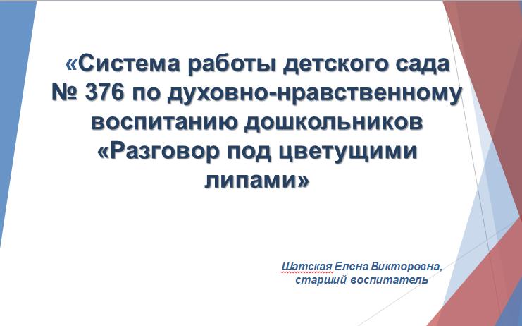 «Здравствуйте, уважаемые коллеги и родители! Рада приветствовать вас на официальном сайте детского сада № 376, где создана моя персональная страница! Здесь вы найдете много интересного и полезного для успешного воспитания детей дошкольного возраста, патриотов своей страны, формирования основ экологического сознания малышей, продуктивной организации образовательной деятельности с ними, а также позитивной социализации дошкольников, необходимой для грамотного выстраивания отношений с социумом».