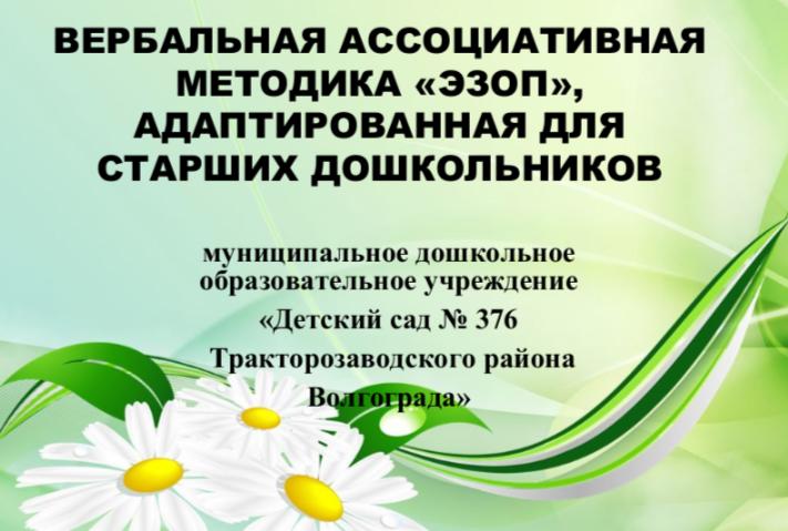 Вербальная ассоциативная методика «ЭЗОП», адаптированная для старших дошкольников