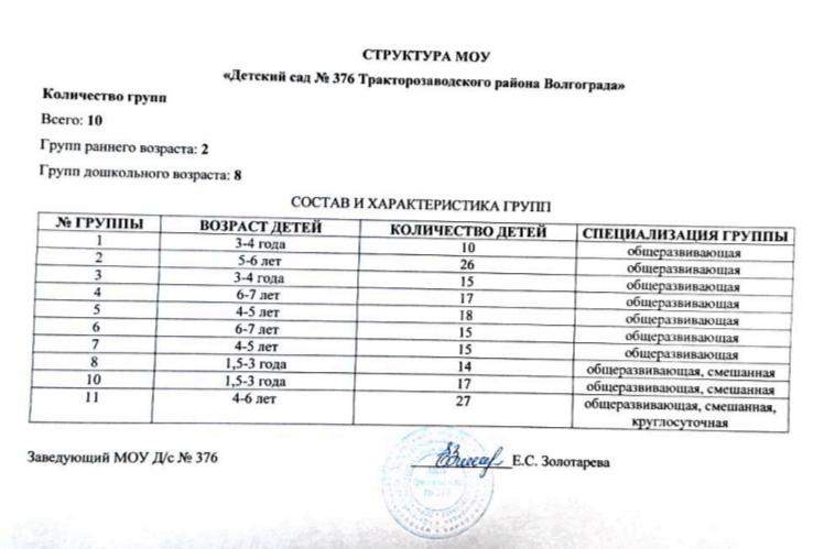 СТРУКТУРА МОУ ДЕТСКОГО САДА: